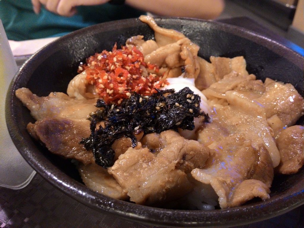 我點了『鹽蔥燒肉丼』,蔥跟燒肉根本是絕配啊,就像失散多年的兄弟又重聚了,新鮮的蔥在嘴巴裡卡滋卡滋。